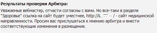 Раз уж такая дискуссия развернулась, конкретизирую. Анкор был соковыжималка садовая. У меня сайт про бизнес. Есть раздел "идеи бизнеса" есть раздел "Интернет" в нем есть категория "Интернет-магазины". Я написал статью "как открыть интернет-магазин бытовой техники". Естественно упомянул соковыжималку, два раза при чем, в абзаце про ассортимент. А оптимизатору нужно было размещение в разделе "идеи бизнеса - кафе, бары, рестораны", как я понял (наверное он в арбитраж написал). Но там была лишь одна статья без ссылки и про пиццерию вообще.